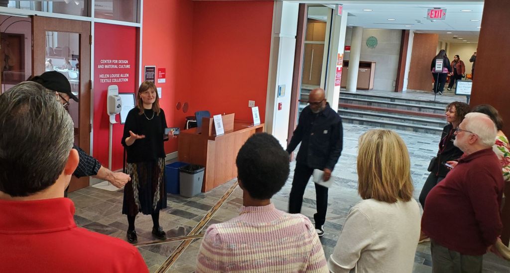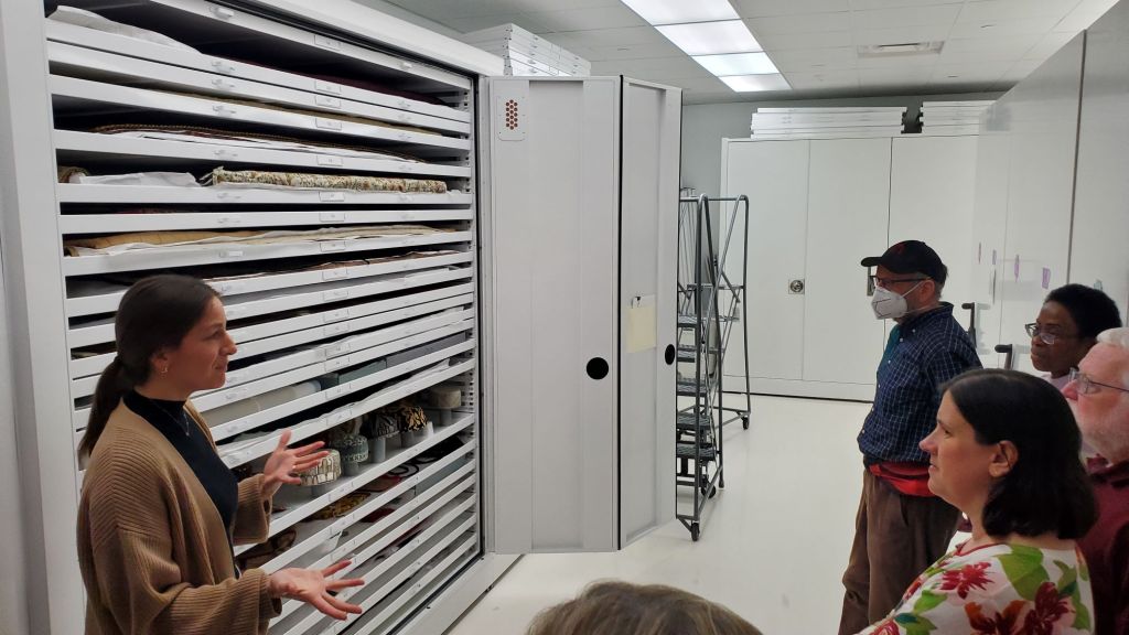 Some pictures from the Helen Louise Allen Textile Collection we toured earlier this month. It was great to get an inside look both at at the current exhibition (Remaking the Renaissance) from Dr. Sophie Pitman the Research Director, and the behind-the-scenes organization and how the items are used in teaching from Collections Manager Carolyn Jenkinson.